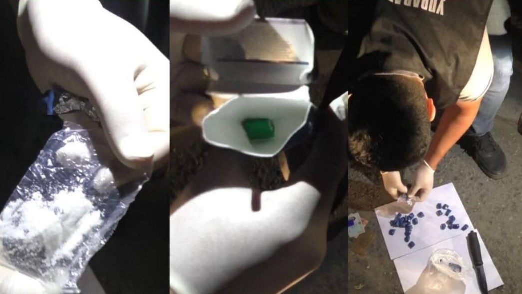 Полиция қызметкерлері жеке тінту кезінде ұсталған азаматтың іш киімінен көк түсті изолентамен оралған бума, оның ішінде ұнтақ және түйіршік түріндегі зат салынған 30 буманы және шалбарының сол қалтасынан бір темекі қорабын, оның ішінен жасыл изолентамен оралған ұнтақ және түйіршік түріндегі зат салынған бір буманы тәркіледі.