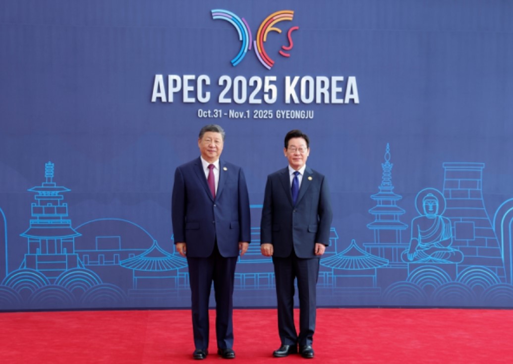 Председателя Си Цзиньпина встретил Президент Республики Корея Ли Чжэ Мен в конференц-зале.