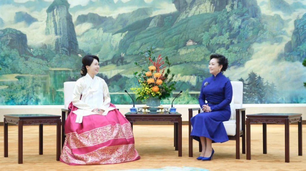Супруга председателя КНР Си Цзиньпина Пэн Лиюань провела в Пекине чаепитие и беседу с Ким Хе Гён, женой президента Республики Корея Ли Чжэ Мёна, находящегося в Китае с государственным визитом, как сообщает информационная служба мобильного приложения "Россия - Китай: главное".