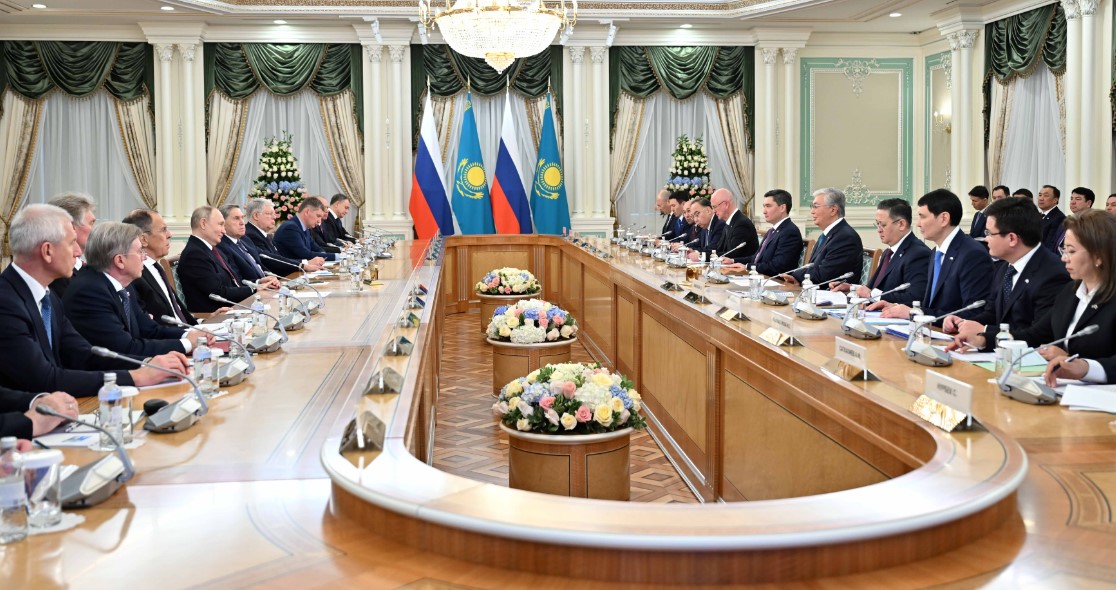 Президент Казахстана Касым-Жомарт Токаев и Президент России Владимир Путин провели переговоры с участием официальных делегаций двух стран.