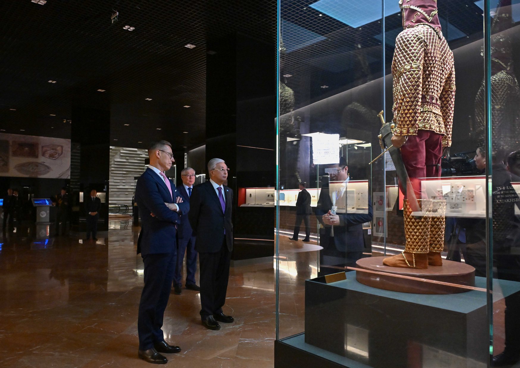 Главы государств осмотрели залы древнетюркской цивилизации, древнего искусства и технологий Великой Степи, традиционной культуры казахов, где ознакомились с редкими историческими экспонатами.