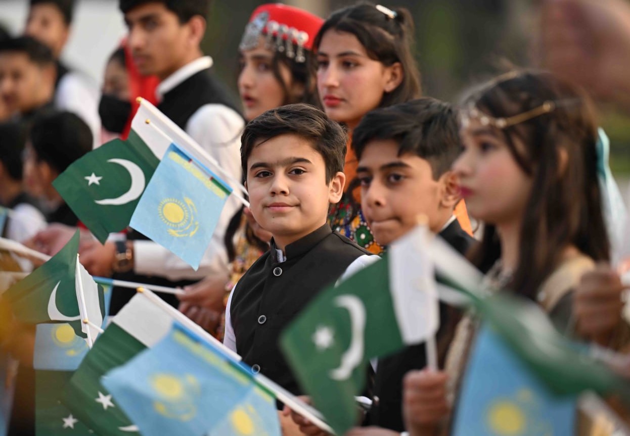 Особую атмосферу церемонии создала группа детей, приветствовавших Президента Казахстана с флагами Казахстана и Пакистана.