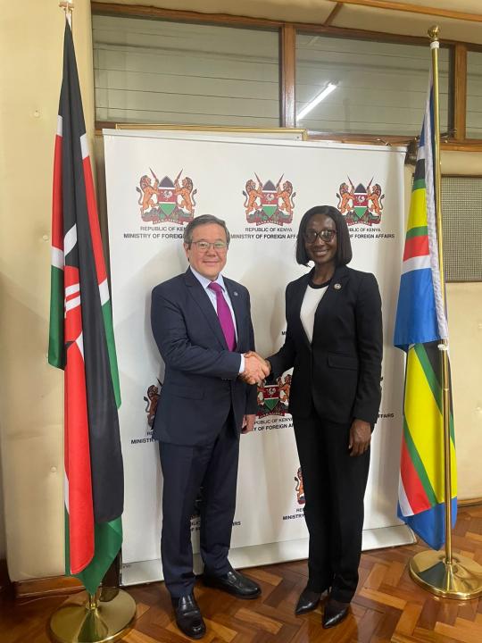 Казахстанский дипломат провёл переговоры с директором Департамента Европы и Содружества Министерства иностранных и диаспоральных дел Кении Джуди Нжау, шефом протокола этого же ведомства Северином Люяли, а также с президентом Национальной торгово-промышленной палаты Кении Эриком Рутто.