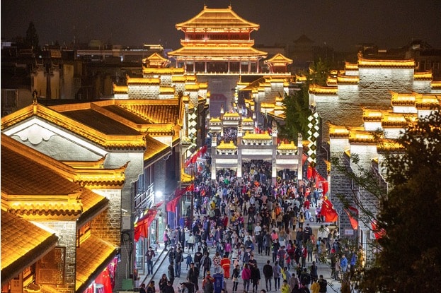 07.10.2020. Толпы туристов посещают древний город в нынешнем городе Сянъян провинции Хубэй Китая. Фотоматериал «Жэньминь жибао» онлайн/Ян Дун