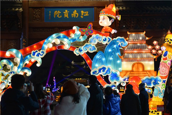 Люди на 34-м Фестивале фонарей «Циньхуай» в Нанкине восточной провинции Китая Цзянсу, 17 января 2020 года.