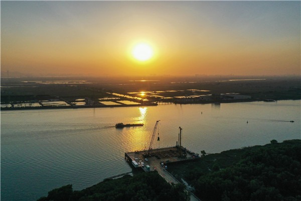 На аэрофотоснимке, который был сделан 26 октября 2020 года, видна строительная площадка моста Хунцимэнь в районе Наньша Гуанчжоу провинции Гуандун.
