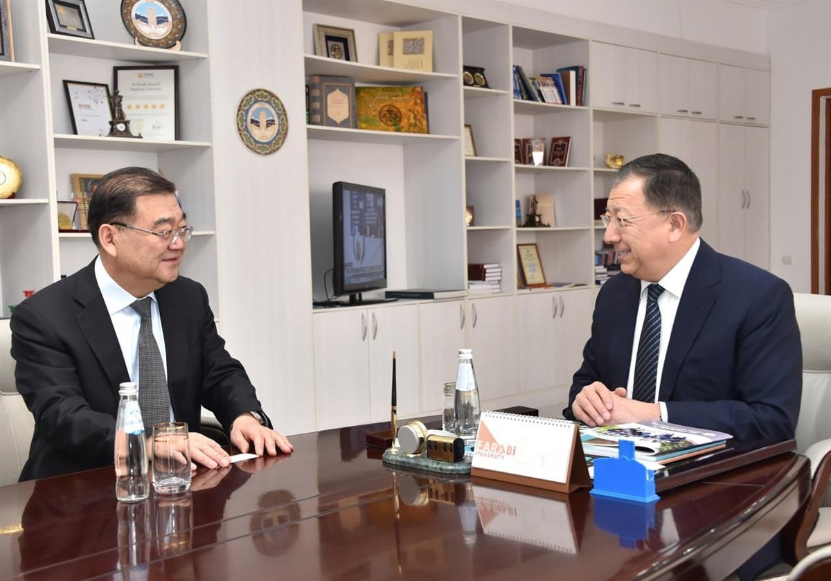 «КазНУ им. аль-Фараби – университет-лидер в Казахстане. В дальнейшем мы поддерживаем тесные отношения с КазНУ и готовы наращивать партнерство. Кроме того, китайский нефтяной университет готов сотрудничать с КазНУ. Данный университет является одним из ведущих вузов КНР по подготовке специалистов в нефтяной отрасли. Партнерство между двумя университетами будет способствовать совместной подготовке кадров и реализации программы двудипломного образования» Бянь Дэчжи