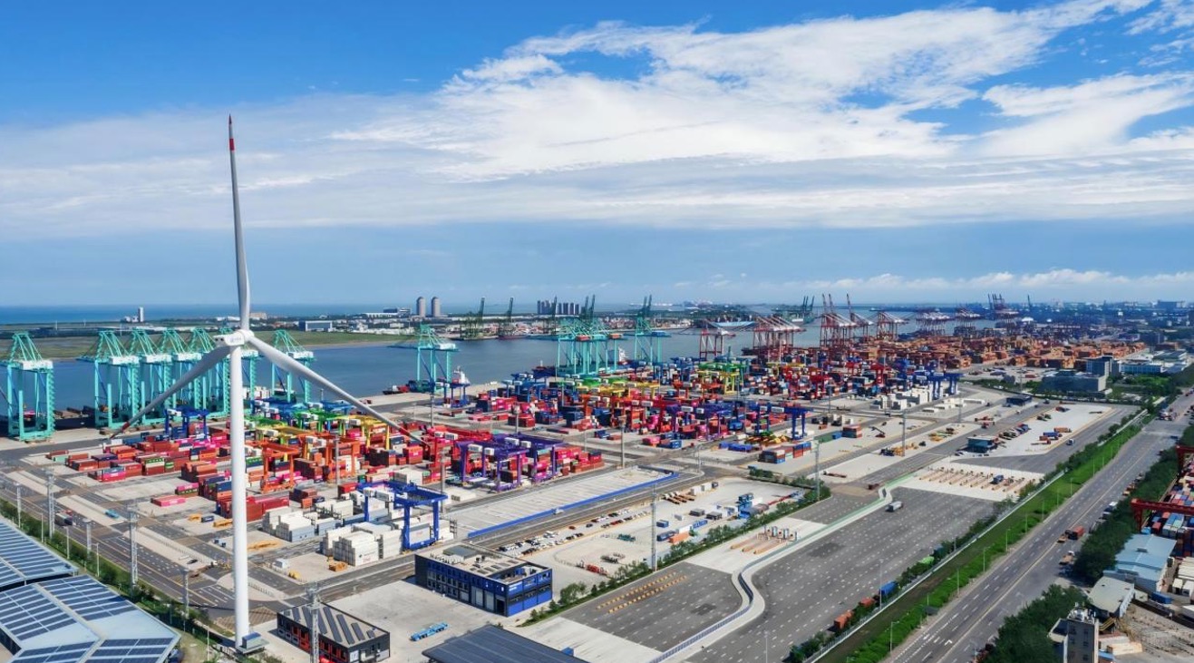 «Умный и безуглеродный» терминал порта Тяньцзинь. Терминал оснащен тремя причалами для судов дедвейтом 200 000 тонн, обеспечивая полностью автоматизированную и интеллектуальную обработку контейнеров на уровне мировых стандартов, а весь процесс эксплуатации терминала осуществляется с нулевым уровнем выбросов углерода.