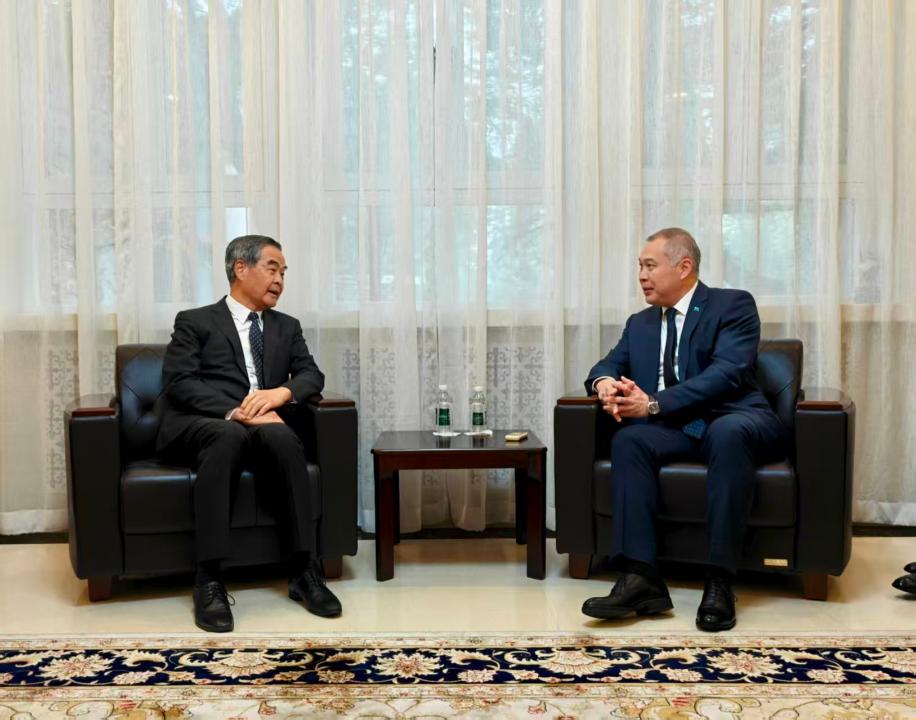 Посол Республики Казахстан в Китайской Народной Республике Шахрат Нурышев провёл встречу с заместителем Председателя Народного политического консультативного совета Китая, Председателем благотворительного фонда «GX Foundation» Лян Чжэньином.