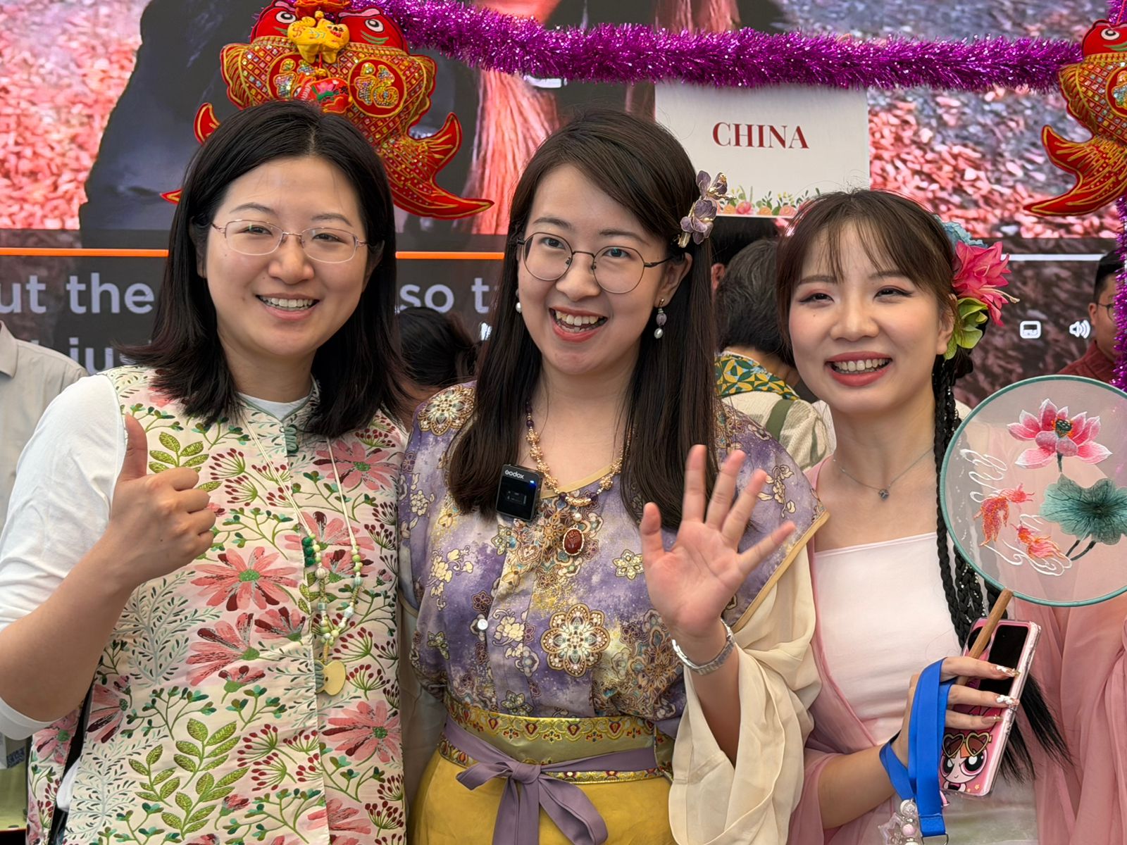 Китайские дипломаты приглашали посетителей примерить традиционные женские и мужские костюмы, характерные для эпохи Хань, и сделать фотографии на память. А также угоститься китайским чаем и одним из самых популярных национальных угощений -жаренным рисом с яйцом.