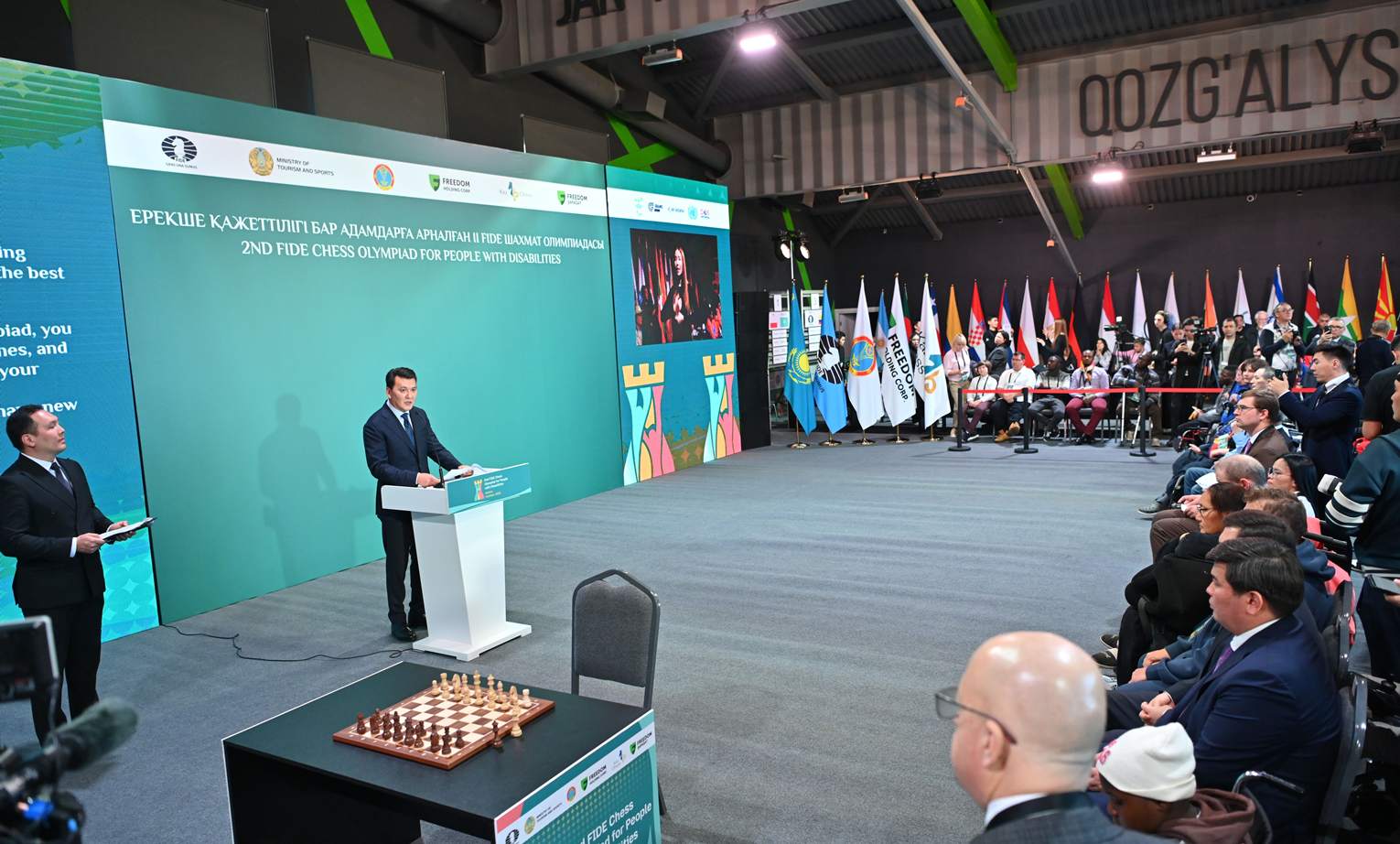 Государственный советник Ерлан Карин принял участие в церемонии открытия второй шахматной олимпиады ФИДЕ среди людей с ограниченными возможностями, передает DKNews.kz.
