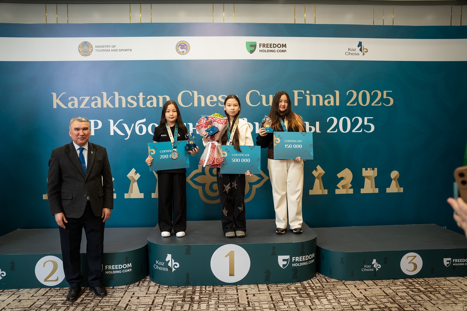 5–8. Адия Мамеш (11.05.2014, Астана, 1787), вице-чемпионка Казахстана-2025 (G12), Азель Тулекенова (29.12.2011, Астана, 1673), победительница 5-го этапа, Алуна Аубакирова (15.02.2011, Акмолинская обл., 1669), победительница 3-го этапа, и Мунира Рау (16.11.2011, Павлодарская обл., 1646) (по ₸80 000);