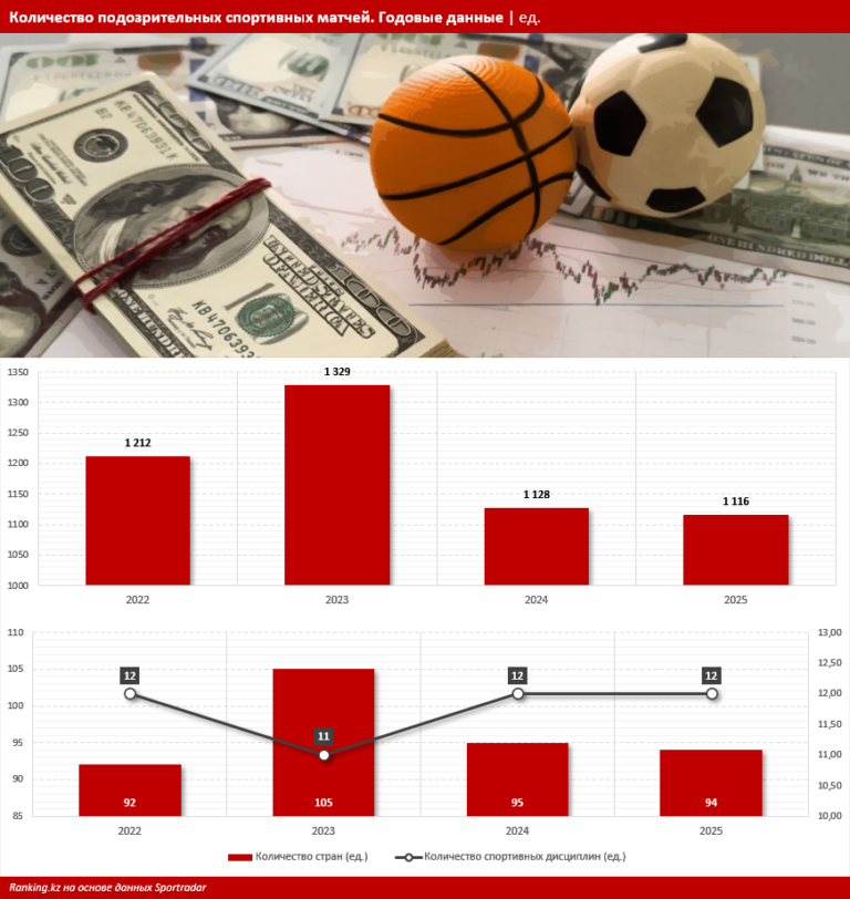 Если в 2022-м было зафиксировано 1212 потенциально договорных игр, то в 2023 году показатель вырос до 1329, а затем уменьшился до 1128 в 2024-м и 1116 в прошлом году.