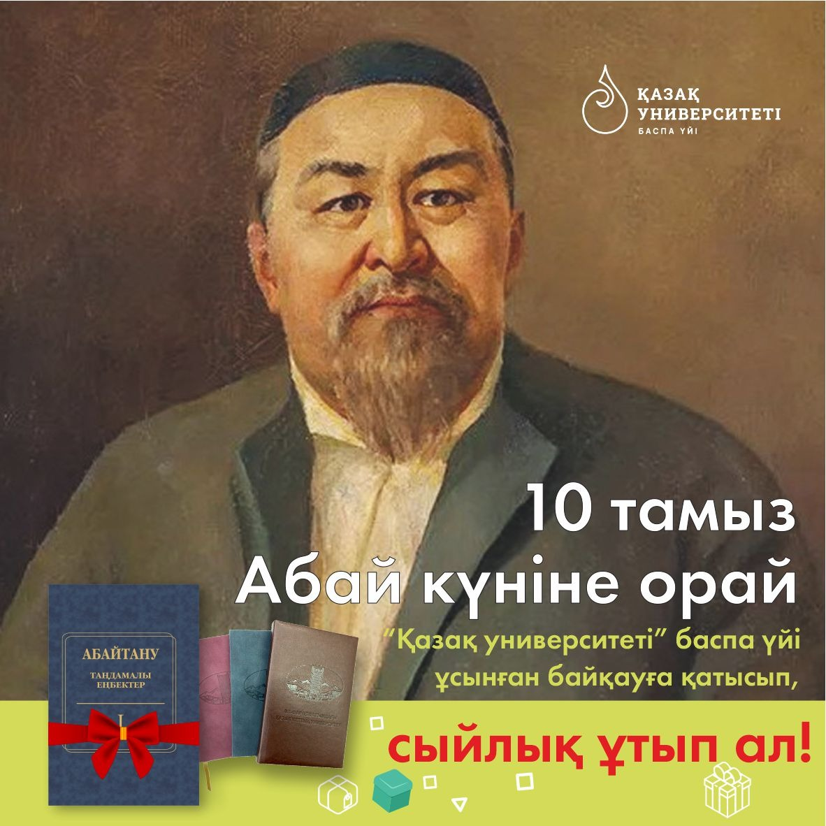 В предверии Дня Абая Издательский дом «Қазақ университеті» объявил онлайн-конкурс среди молодежи до 30-лет, в форме викторины по творчеству великого поэта-мыслителя.