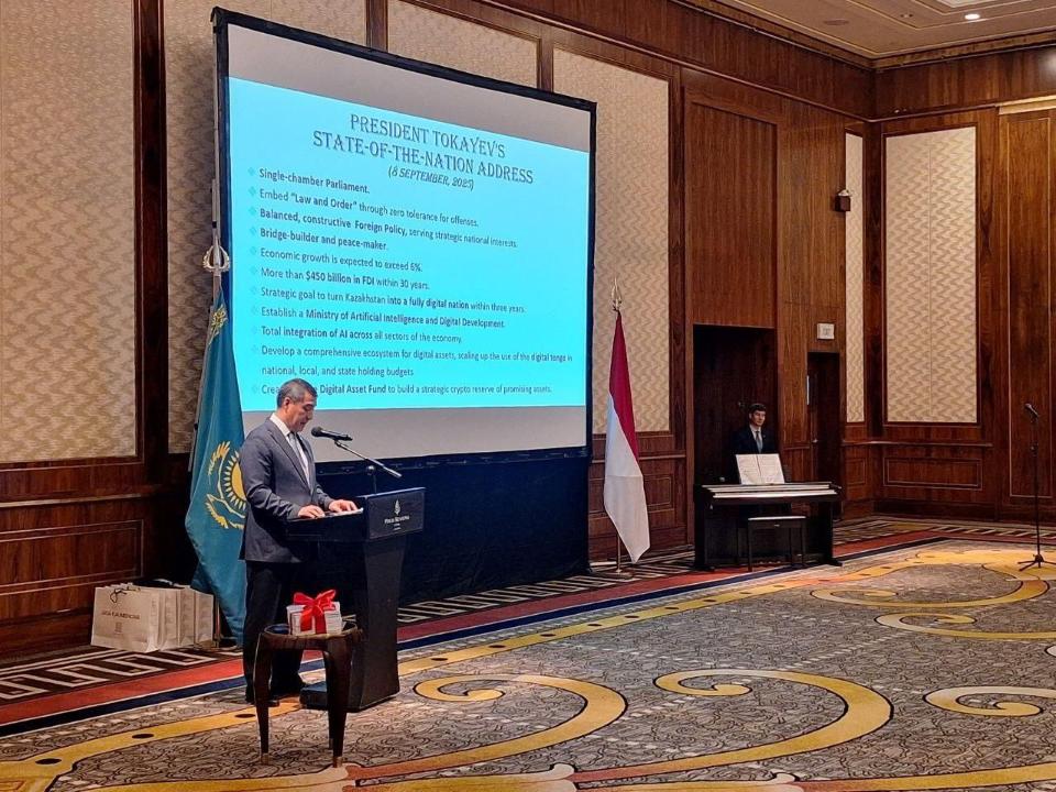 В своём выступлении Посол Казахстана Сержан Абдыкаримов рассказал членам Общества об историческом значении Декларации о государственном суверенитете нашей страны от 25 октября 1990 года, текущем состоянии и перспективах казахско-индонезийского партнёрства, современном развитии РК в рамках задач, поставленных Президентом Касым-Жомартом Токаевым в сентябрьском Послании народу «Казахстан в эпоху искусственного интеллекта: актуальные задачи и их решения через цифровую трансформацию». В этой связи, дипломат отметил наличие большого потенциала, новых направлений и благоприятных возможностей для расширения многогранного сотрудничества между Казахстаном и Индонезией в сферах взаимного интереса.