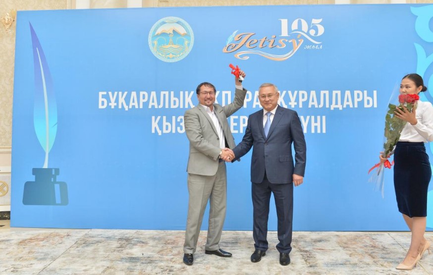 Нагрудные знаки «Отличник информационной сферы» были вручены редакторам отделов областных газет «Жетісу», «Вестник Жетісу» Айгуль Байбосыновой и Татьяне Демидовой. Также ряд представителей масс-медиа, включая блогеров, были награждены Почетными грамотами и Благодарственными письмами акима области.