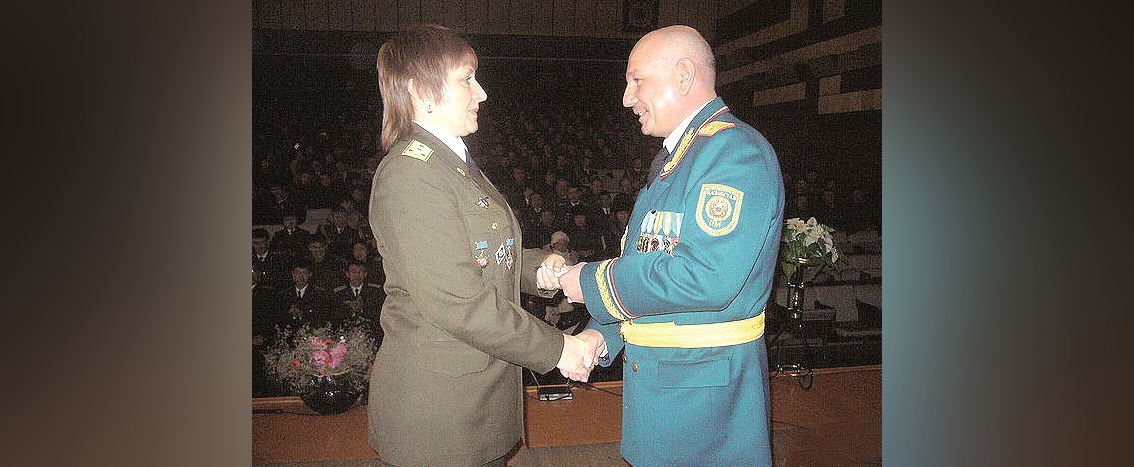 Если мою служебную биографию вместить в один абзац, то это будет выглядеть примерно так. 10 мая 1994 года Октябрьским РВК была призвана на действительную воинскую службу, которую проходила по 25 ноября 2011 года. Уволилась в отставку в звании «майор» с должности начальника службы ГСМ соединения. Кстати, есть и награды. Это «Кайсар» первой и второй степени, юбилейные медали 10, 15, 20 лет ВВ МВД РК, юбилейные 10 и 25 лет Независимости РК. Карманные и наручные часы от Командующего ВВ, врученные мне в 2002 и 2011 годах.