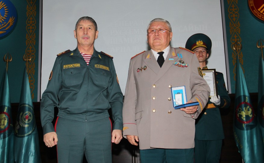 В начале всем присутствующим были продемонстрированы фото-слайды, где можно было наглядно увидеть основные этапы жизни генерала Рустемханова. Офицеры и сержанты визуально прикоснулись к жизни и службе Ерсайына Шамгоновича – увидев его путь: от солдата и заместителя командира взвода до присвоения генеральских погон и нахождения в должности первого заместителя начальника Главного штаба Комитета Внутренних войск МВД РК.