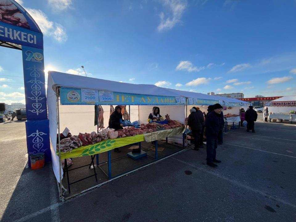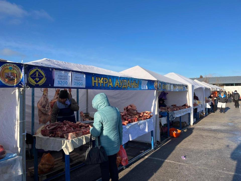 Сельскими производителями была привезена для горожан в широком ассортименте мясная продукция (мясо говядины, конины, свинины, баранины). Так, например, мясо говядины и конины продавалось от 2700тенге.