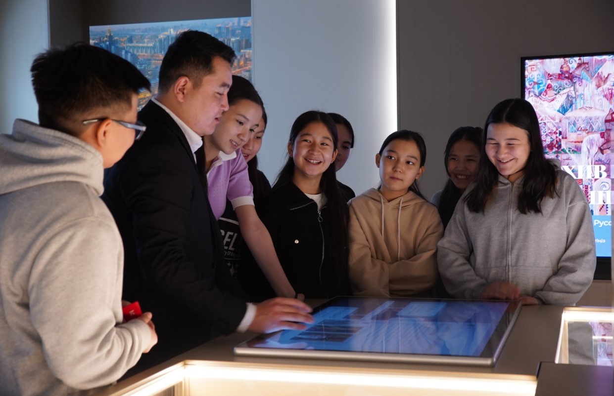 Свое знакомство с учреждением школьники начали с историко-документальной выставки «ООН: 80 лет на пути мира и сотрудничества. Казахстан в системе ООН».