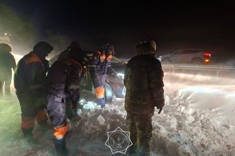 В Илийском районе на трассе Конаев – Курты спасателями эвакуированы 43 человека из них 1 ребенок и 20 легковых автомобилей, застрявших в снежном заносе.