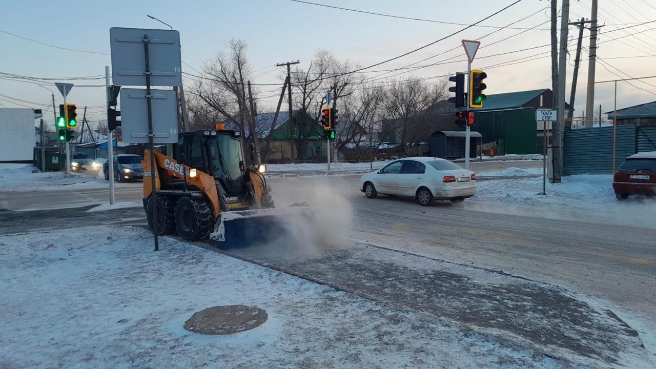 Для безопасного передвижения горожан дороги, тротуары и улицы посыпаются технической солью.