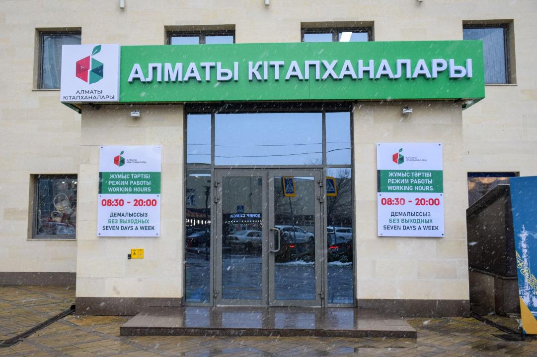 Новая городская библиотека расположена по адресу: улица Розыбакиева, дом 247, блок 7, и открыта для жителей и гостей города ежедневно с 08:30 до 20:00 без выходных.
