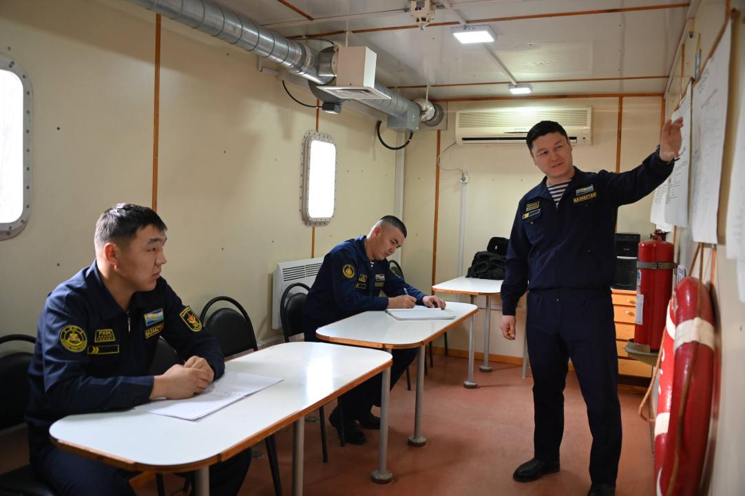 В учебном центре они ознакомились с аварийно-спасательным оборудованием, изучили алгоритмы действий по предупреждению и ликвидации последствий чрезвычайных ситуаций. Так что на боевые корабли они прибыли сформировавшимся и подготовленными специалистоми, способными уверенно действовать в сложных и экстремальных ситуациях, – пояснил начальник учебно-тренировочный станции по борьбе за живучесть капитан-лейтенант Самат Мамушев.