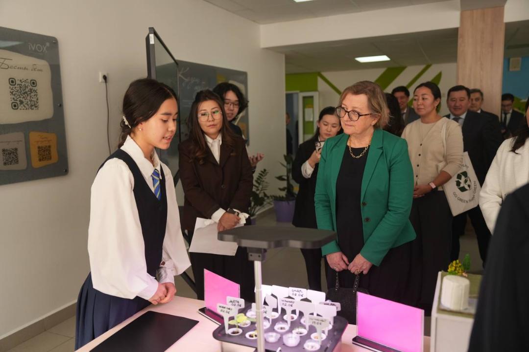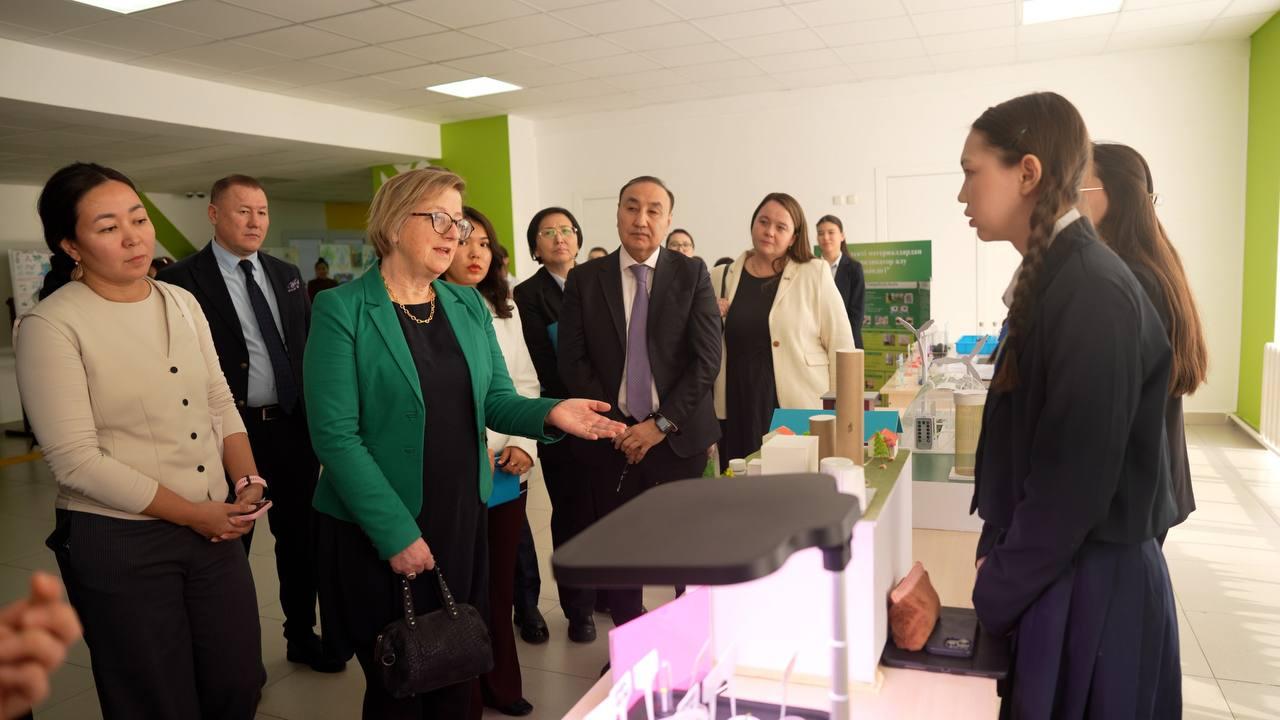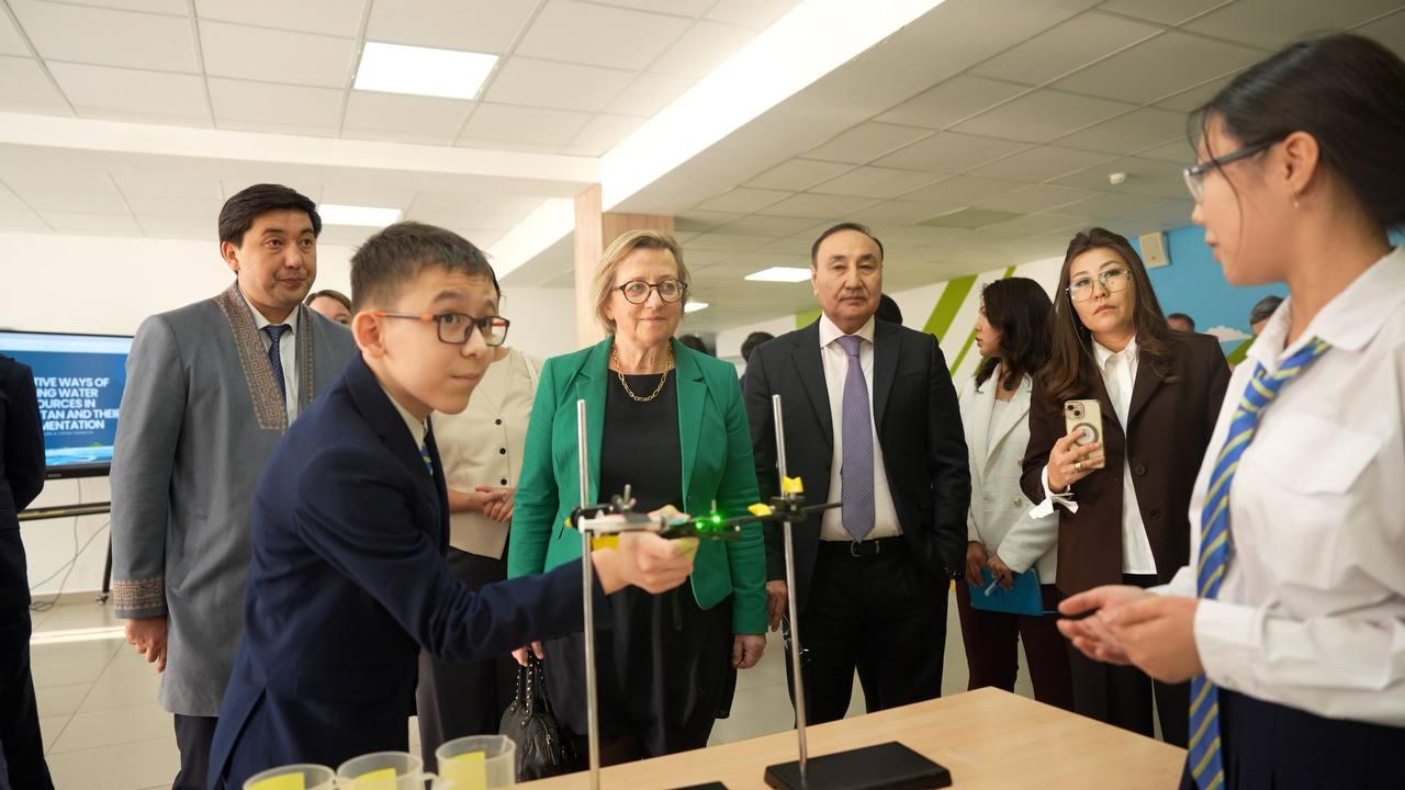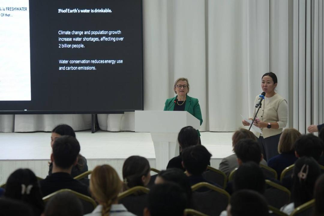 В специализированном лицее №82 «Дарын» города Астаны состоялся экологический час на тему водосбережения «Экономь воду – сохраняй будущее» с участием Посла Великобритании в Казахстане Салли Аксуорси и вице-министра водных ресурсов и ирригации РК Талгата Момышева, передает DKNews.kz.