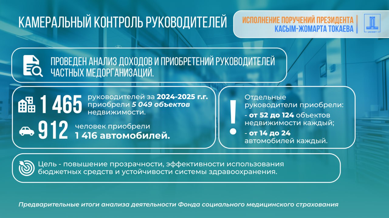Работа была проведена в рамках поручений Главы государства по усилению бюджетной дисциплины. 18 декабря 2025 года Премьер-министр Олжас Бектенов поручил Министерству финансов проанализировать деятельность Фонда социального медицинского страхования, чтобы понять, насколько эффективно расходуются бюджетные средства.