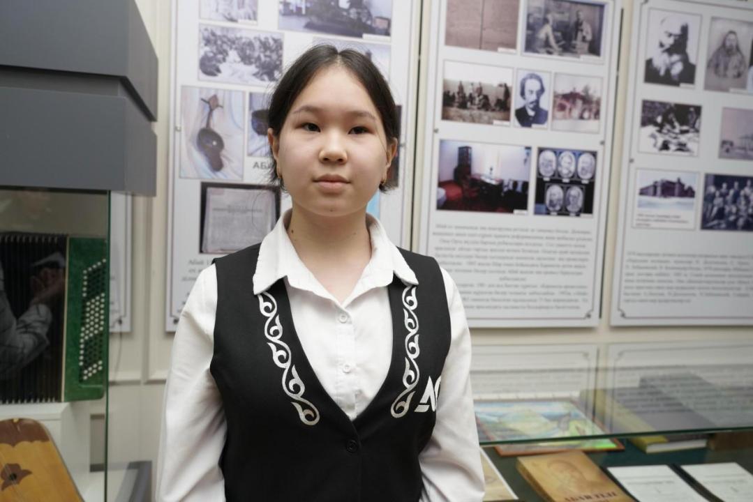 Группа гостей и учеников посетила музей Абая в школе. Ознакомив посетителей с музеем, учащиеся и его руководитель рассказали о своде законов, состоящем из 73 статей, написанном Абаем.
