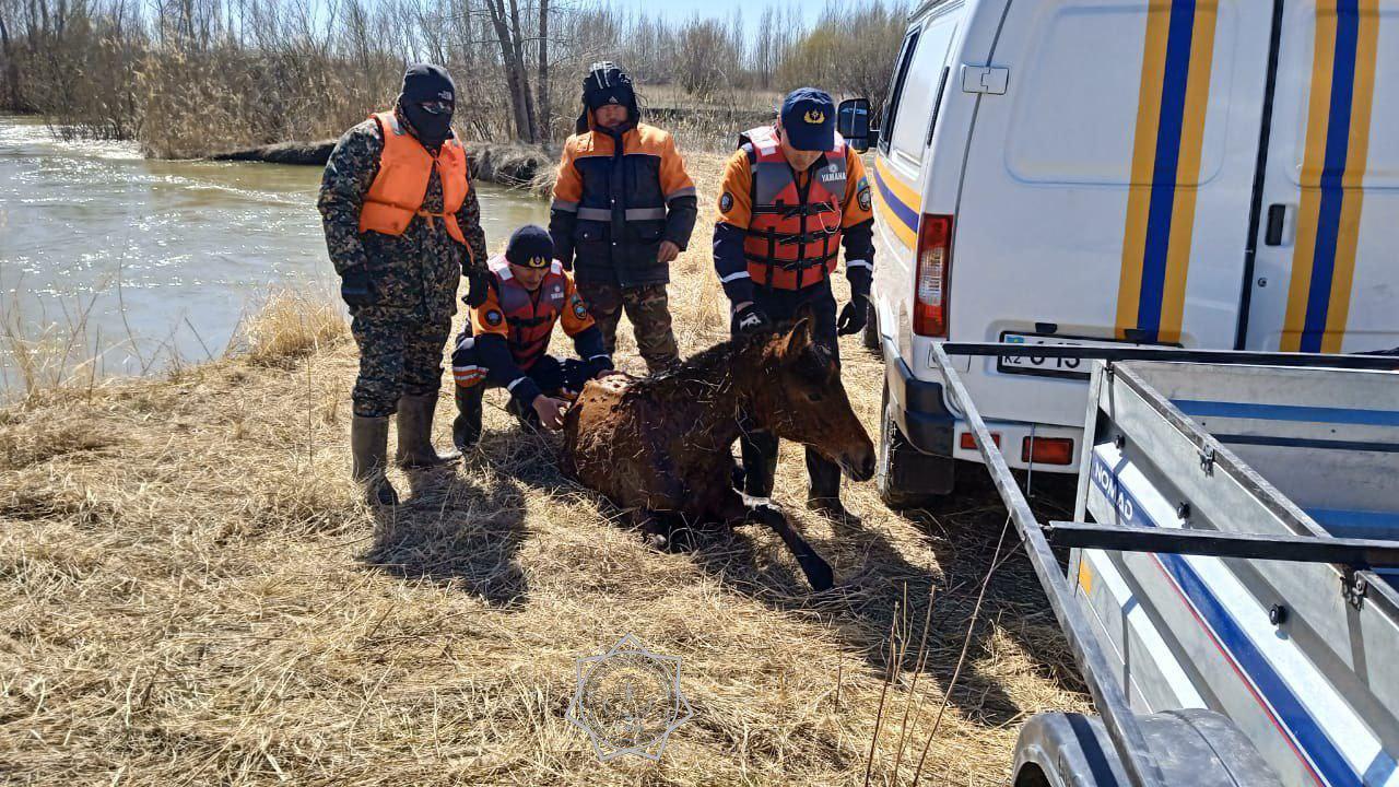 В Актобе спасатели почти три часа боролись со льдом, чтобы спасти лошадь, провалившуюся в реку. Из-за отсутствия подъездных путей к месту происшествия сотрудники добирались пешком. После этого вручную прорубили путь во льду к берегу.