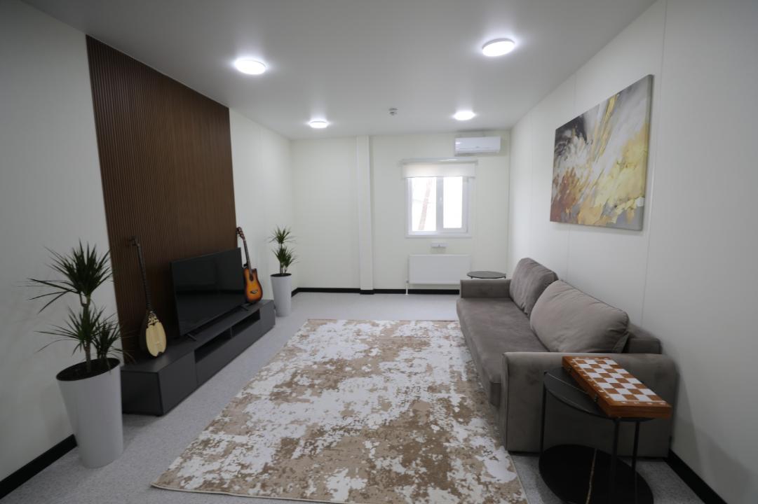 В состав комплекса входит отдельное здание апартаментов для сотрудников. В нём предусмотрены жилые комнаты, зоны отдыха и приёма пищи, а также необходимые бытовые помещения для комфортного проживания спасателей и членов их семей.