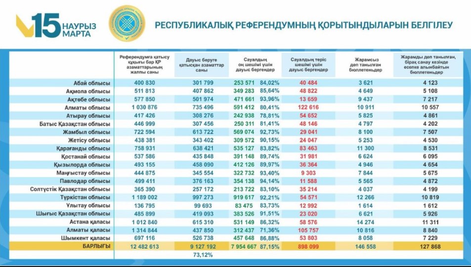 В Казахстане официально подвели итоги одного из самых важных политических событий последних лет — республиканского референдума по новой Конституции, передает DKNews.kz.