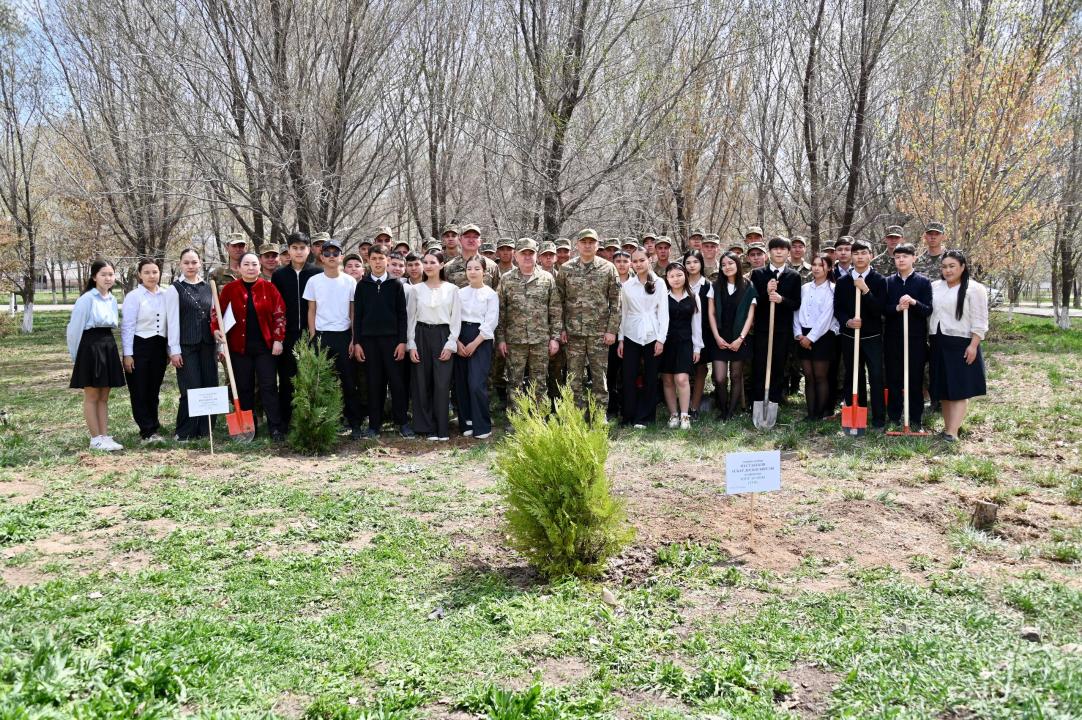 На аллее имени Сагадат Нурмагамбетов военнослужащие вместе со школьниками высадили первые десятки саженцев. До конца мая здесь планируют посадить около 500 молодых деревьев — целую зеленую зону, которая со временем станет живым символом заботы о природе.