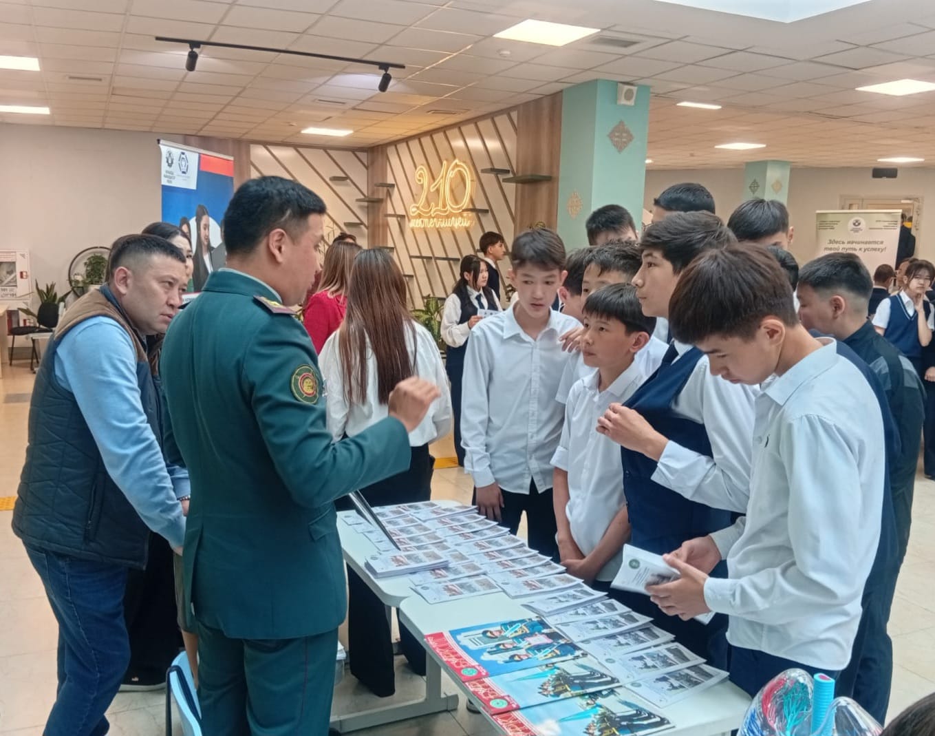 Отдельный блок был посвящён военному образованию. Представители Национальной гвардии в Алматы рассказали об Академии Национальной гвардии в Петропавловске, а также разъяснили особенности и преимущества военной службы.