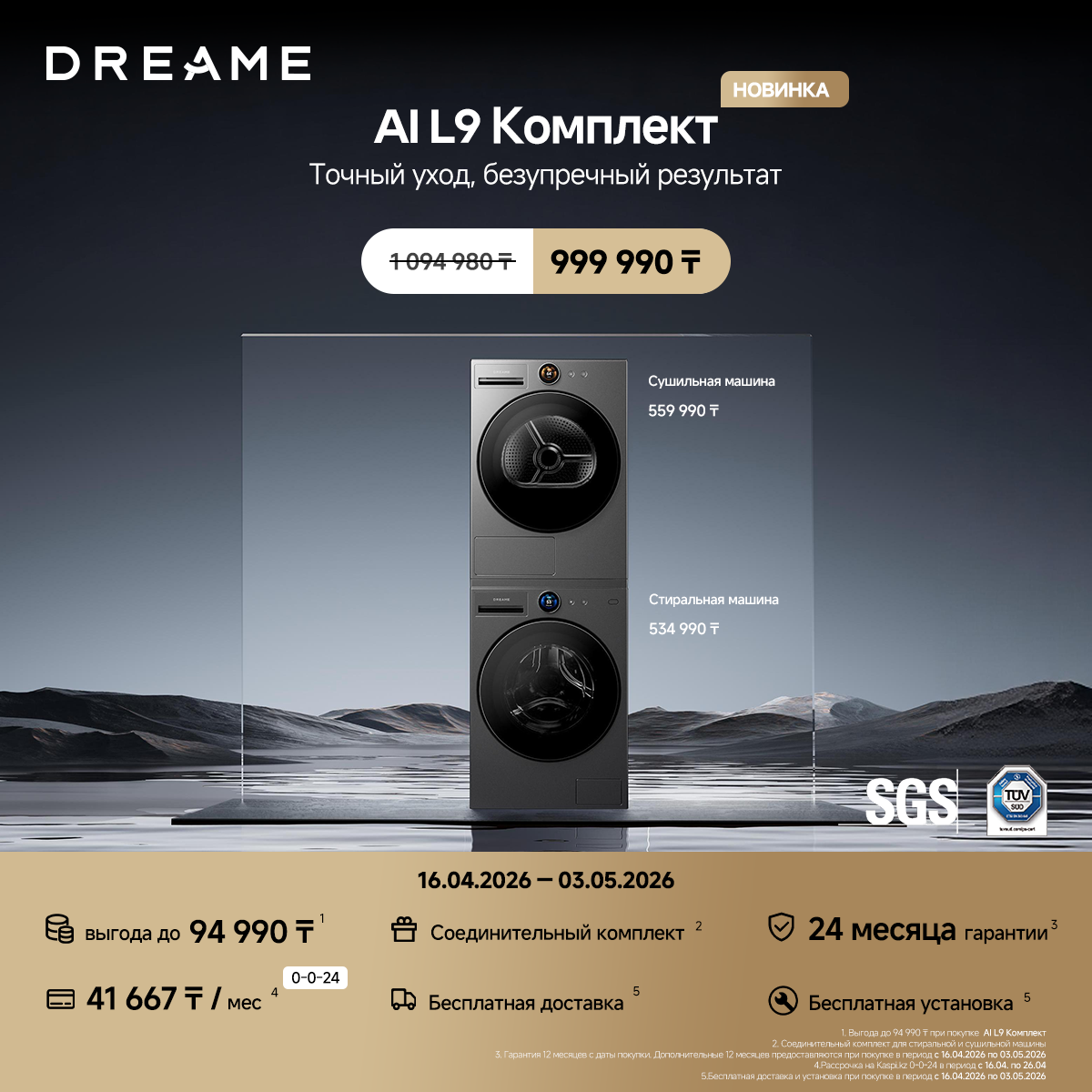 в подарок обогреватель HT30 Ultra, выгода до 58 990 тенге - Комплект Dreame AI L9 – специальная цена 999 990 тенге