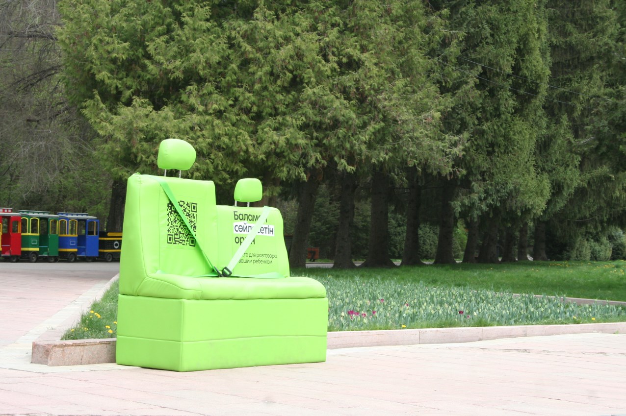 Символом кампании стало заднее сиденье автомобиля, пространство, где родитель и ребенок могут поговорить без отвлекающих факторов. В Алматы также установлены инсталляции в виде автомобильного сиденья в торговых центрах и на оживленных перекрестках города. Это позволяет дополнительно привлечь внимание общественности к проблеме буллинга.