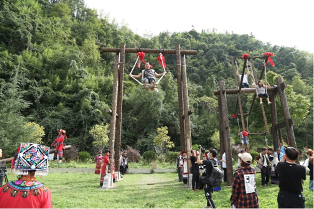 同在2017年,盘州市麻郎垤村在体彩公益金的支持下翻修升级了当地传统体育项目“彝族秋千”,以秋千为主的体育旅游项目助推了这个彝族村落的产业转型,在外务工的年轻人返乡创业,做起农家乐、民族服饰销售等家门前的生意。